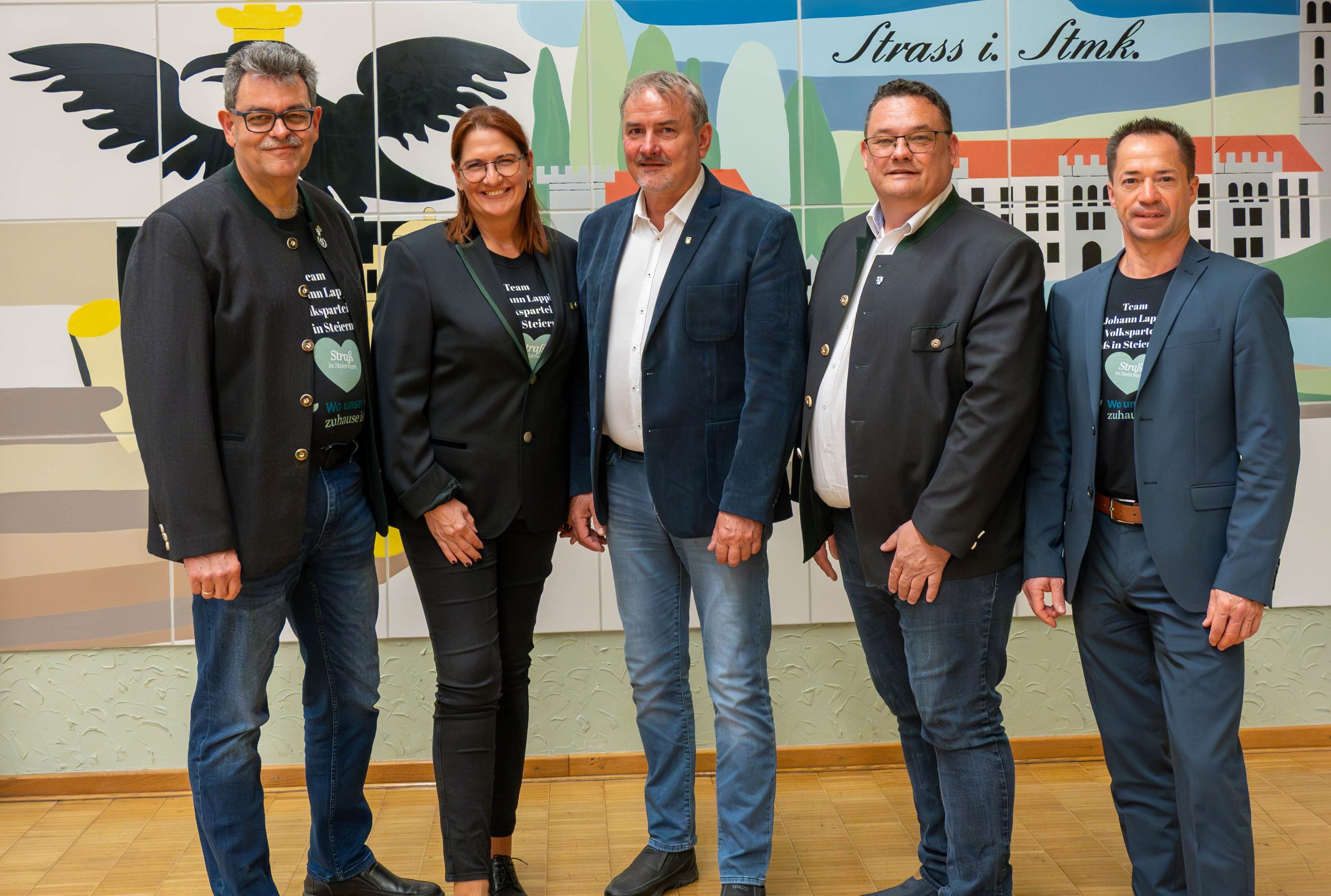 Vorstandsmitglied Josef Rauscher (ÖVP Straß), 1. Vizebürgermeisterin Romana Vehovec-Huhs (ÖVP Straß), Bürgermeister Johann Lappi (ÖVP Straß), 2. Vizebürgermeister Manuel Kahr (FPÖ) und Gemeindekassier Ing. Werner Grassl, Bakk.Tech (ÖVP Straß).