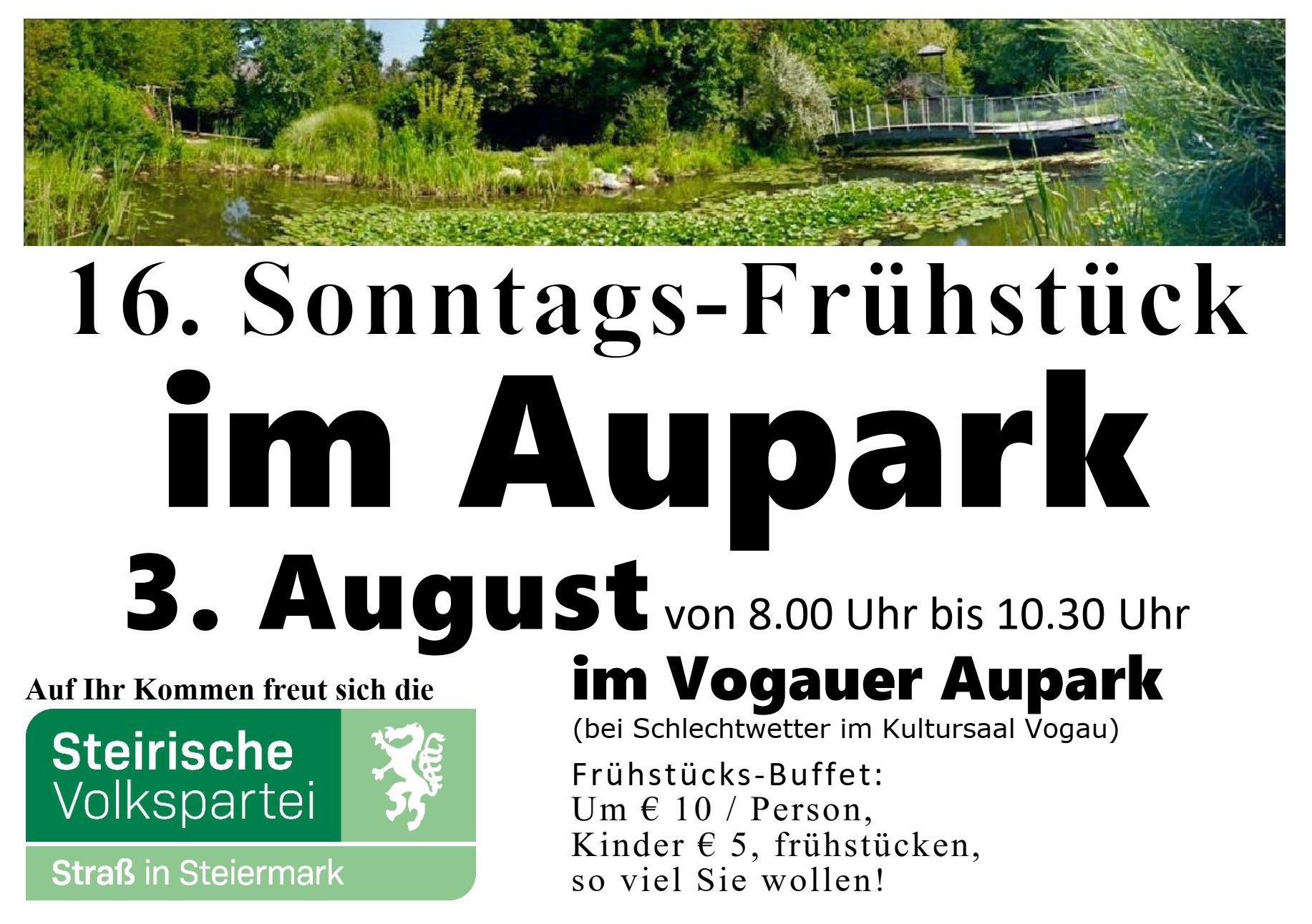 Herzliche Einladung zum 16. Frühstück im Aupark am 3. August 2025 mit Beginn um 8 Uhr. Genießen Sie den Start am Morgen mit duftendem Brot, gutem Kaffee und weiteren herzhaften Köstlichkeiten.